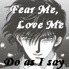 Description: Seishirou from Tokyo Babylon with text "Fear me, Love Me, Do as I Say"